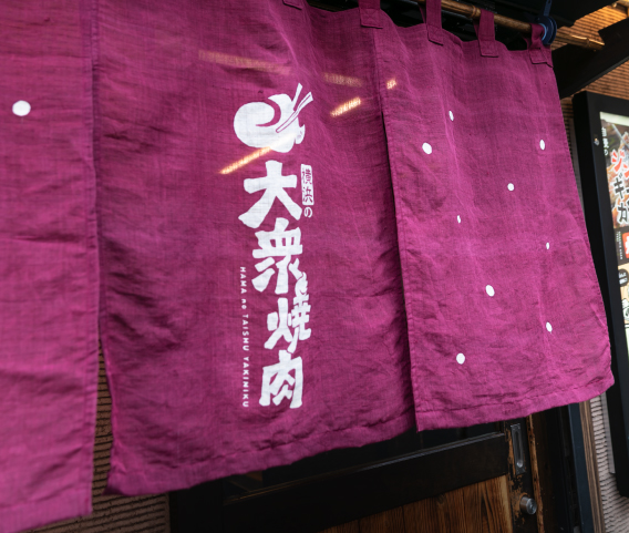 「筋斗雲をデザインに入れたい」とご要望をいただき、「お箸が進む」という意味を込めてホルモンを模した、人目を惹く筋斗雲をシンボルとしています。 -